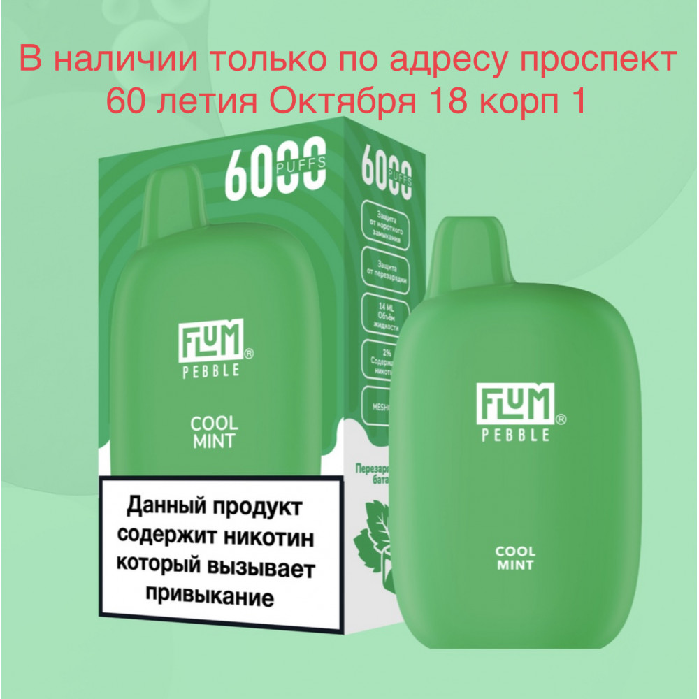 FLUM видыPebble FLUM вкусыПрохладная Мята FLUM количество в блоке10 шт
